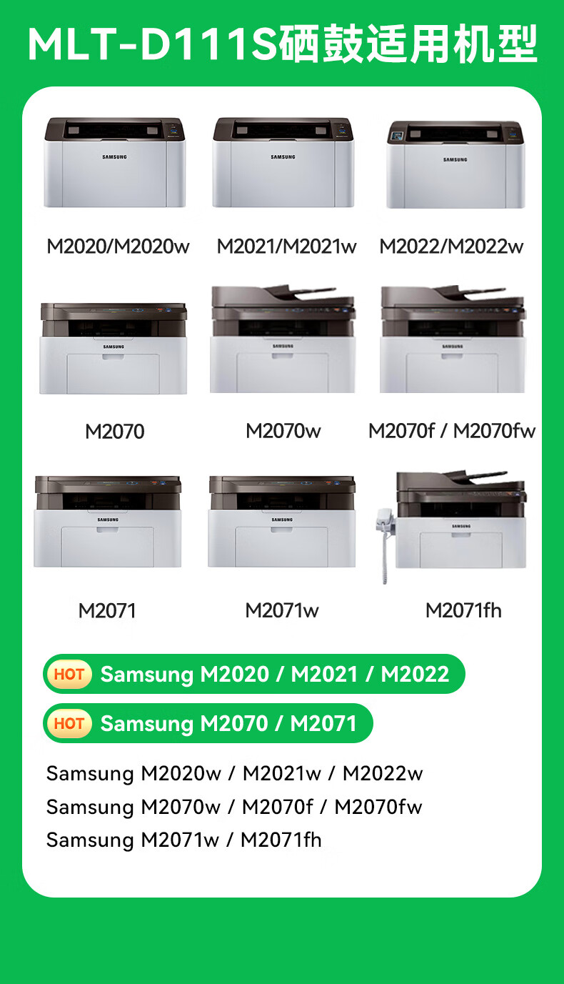 才进适用三星m2071硒鼓MLT-D111S M2070 M2020 M2021 M2022打印机碳粉M2021W M2020W m2071FH墨盒M2070F/W/FW MLT-D111S/支