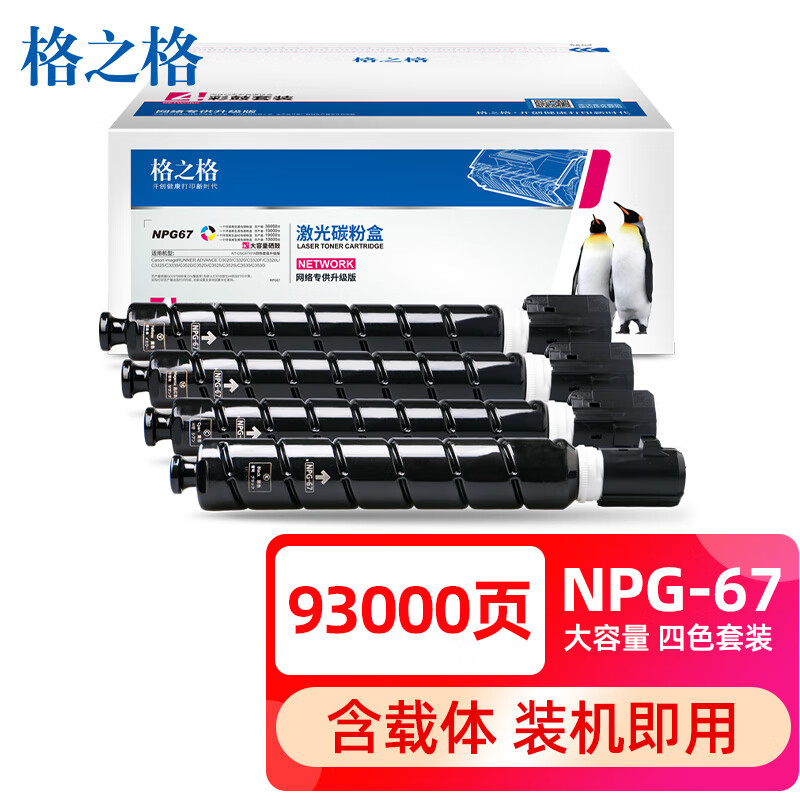电脑、办公  > 办公耗材  > 硒鼓  >  格之格  >  格之格适用佳能NPG-67粉盒 C3222l墨盒C3020 3120L硒鼓3226 c3130l c3125 C3520粉盒C3325 NPG67四色高容套装 NT-CNC67XFA网络专供升级版四色套装/个