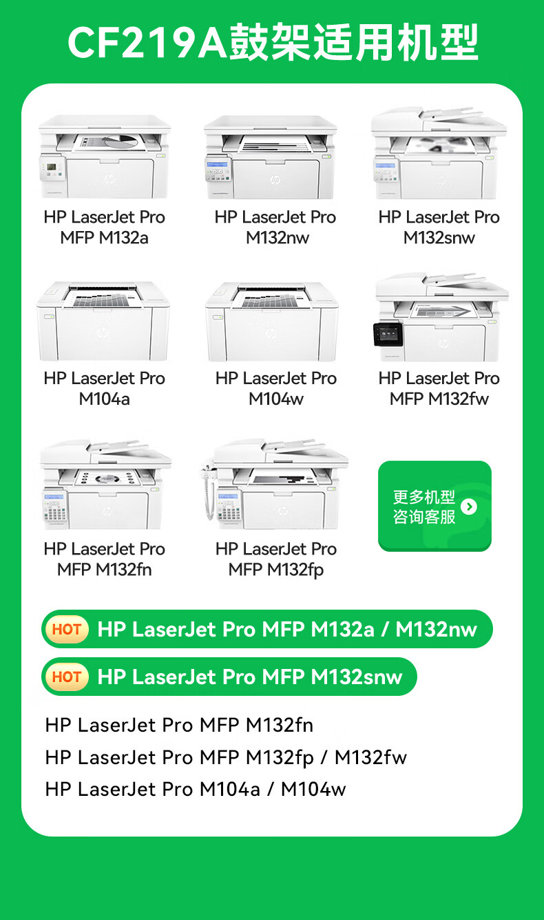 • 商品名称:才进适用惠普CF219a成像鼓19a鼓架M132a硒鼓M132fw/fn/fp打印机粉盒M104a/w墨盒HP18a CF218a M132nw M132snw CF219A/个