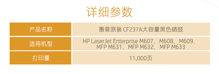 • 商品名称:惠普(HP)37A(CF237A)原装硒鼓 黑色(支)(适用:M607/608/609/631/632)辨假服务 CF237A/支