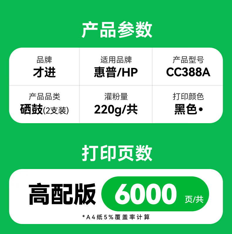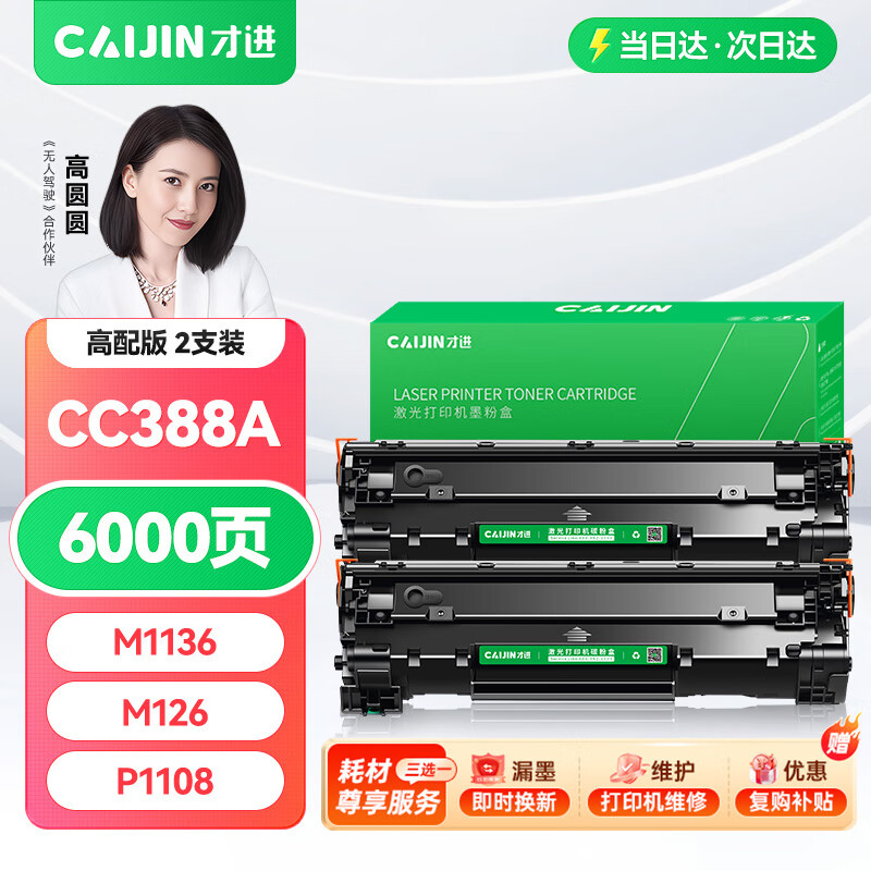 电脑、办公  > 办公耗材  > 硒鼓  >  才进  >  才进88a硒鼓适用惠普m1136硒鼓M126a/nw/snw plus打印机p1108 P1106 cc388a M128fn/fp/fw墨盒1007 1008 m1216nfh 高配版2支装-CC388A/支