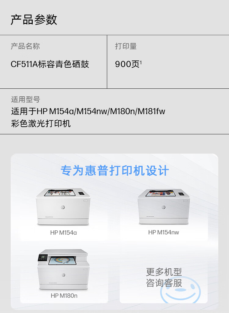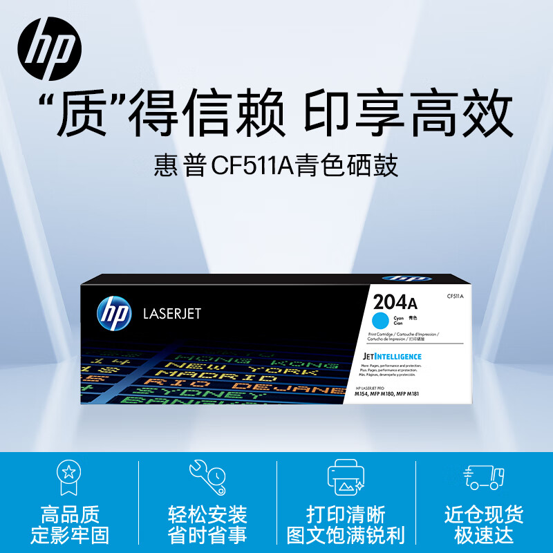 商品名称: 惠普(HP)CF511A/204A原装青色硒鼓 适用hp hp M180n/M154a/M181fw/M154nw 打印机硒鼓 CF511A/盒