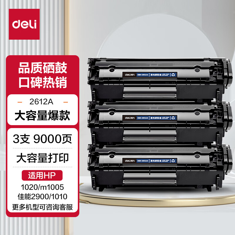 得力(deli)12a硒鼓 Q2612A硒鼓适用惠普1020硒鼓 hp m1005 1020plus 1010 佳能lbp2900打印机墨盒 大容量3支 DBH-2612AX3/盒