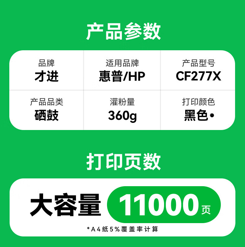 电脑、办公  > 办公耗材  > 硒鼓  >  才进  >  才进cf277a硒鼓适用惠普m329dw硒鼓m429dw M429fdw/fdn碳粉M305d M405d墨粉M405dn/dw 77a打印机墨盒LaserJet 硒鼓 CF277A 带芯片 大容量版/支