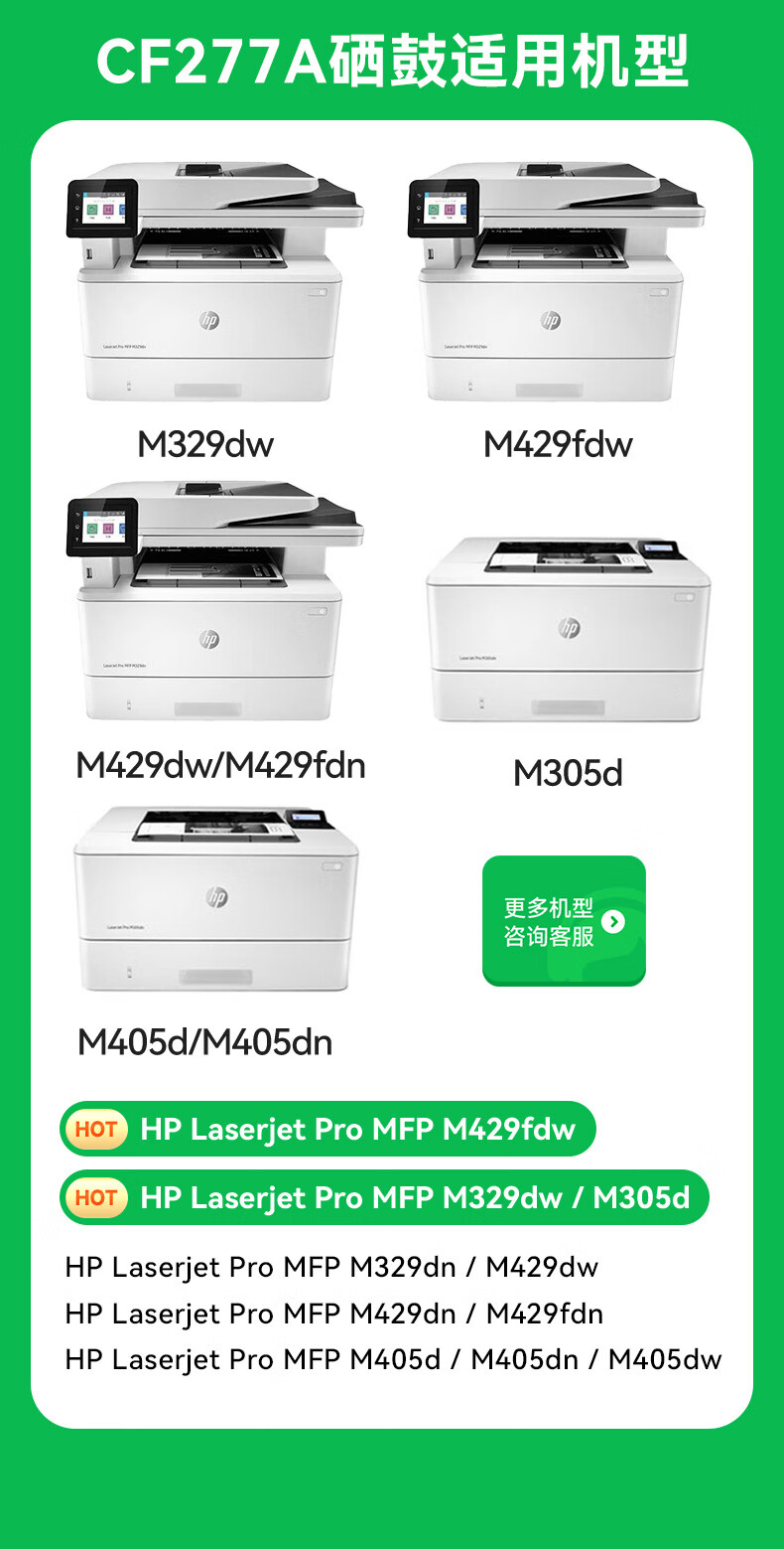 • 商品名称:才进cf277a硒鼓适用惠普m329dw硒鼓m429dw M429fdw/fdn碳粉M305d M405d墨粉M405dn/dw 77a打印机墨盒LaserJet 硒鼓 CF277A 带芯片 大容量版/支
