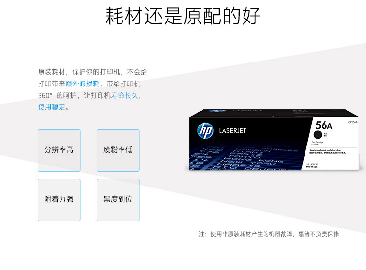 包装清单: 惠普原装56A黑色打印硒鼓×1