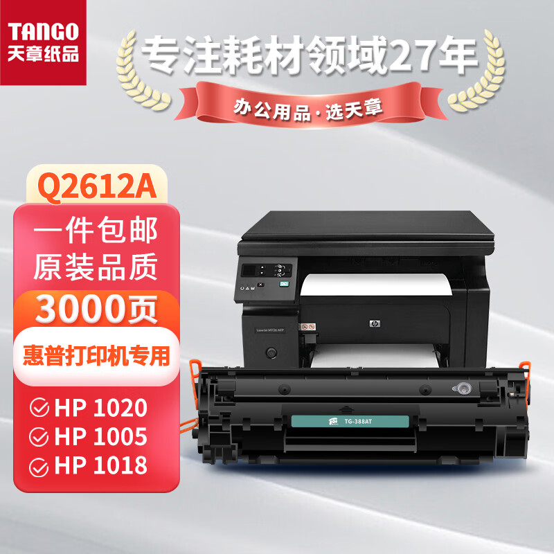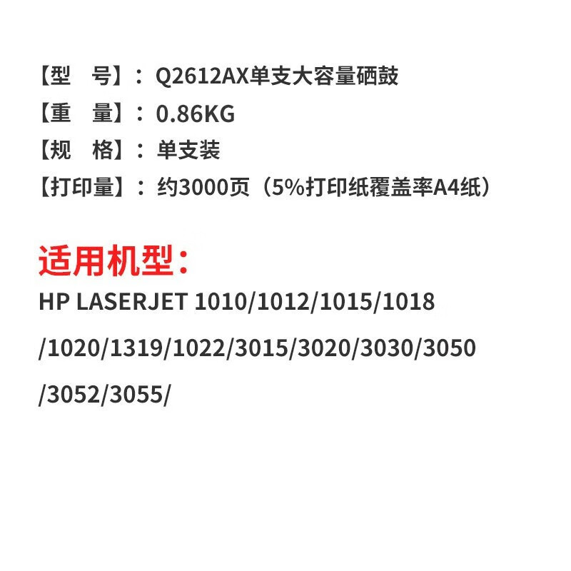 • 商品名称:新绿天章Q2612A硒鼓1020plus墨盒适用惠普hp mfp m1005硒鼓12A 1010 1018 3050 3015 3052佳能lbp2900+打印机 TG-Q2612AX/个