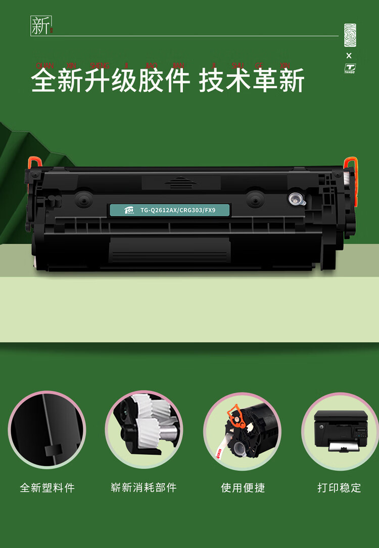 商品名称: 新绿天章Q2612A硒鼓1020plus墨盒适用惠普hp mfp m1005硒鼓12A 1010 1018 3050 3015 3052佳能lbp2900+打印机 TG-Q2612AX/个