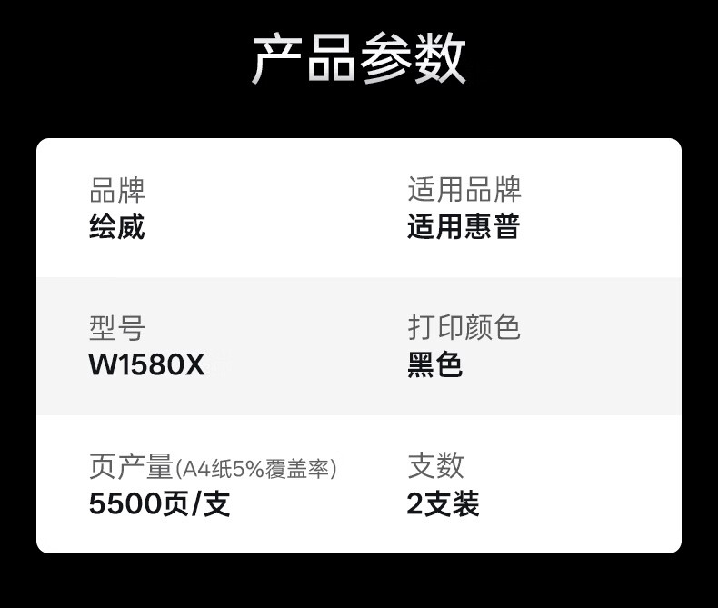 商品名称: 绘威2606dw墨粉 适用惠普2606dw硒鼓 2606sdw粉盒 HP Tank 1020 1005w 158A粉盒158X碳粉 墨粉盒 2支装 硒鼓/支
