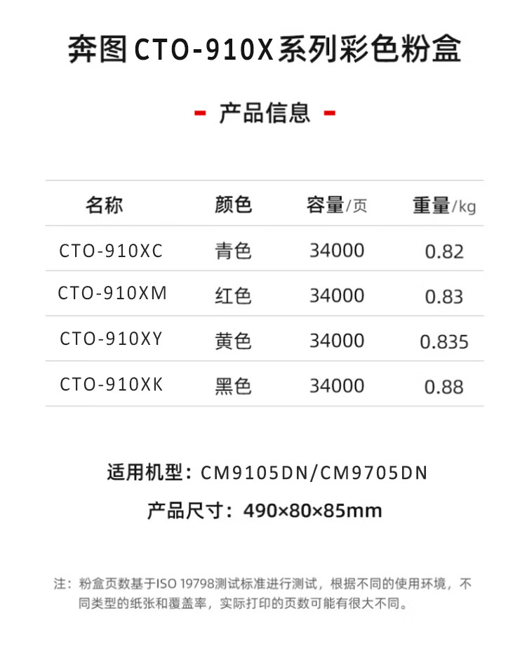 商品名称: 奔图(PANTUM)原装耗材CTO-910XC青色碳粉盒 适用于奔图CM9105DN/CM9705DN 打印容量约34000页 CTO-910XC/盒