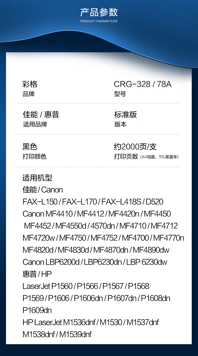 商品名称: 彩格328硒鼓适用佳能4712硒鼓MF4700 MF4410 4400 MF4870dn MF4720w MF4752墨粉盒crg328打印机硒鼓惠普ce78a硒鼓 crg328硒鼓/支