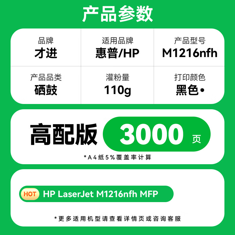 商品名称: 才进M1216nfh硒鼓适用惠普Laserjet Pro MFP M1216nfh专用版墨盒M1216打印机易加粉晒鼓激光复印一体机墨粉盒 硒鼓 M1216nfh专用版1支装/支
