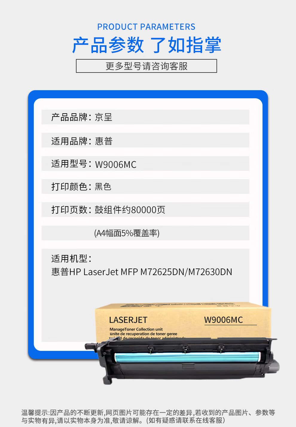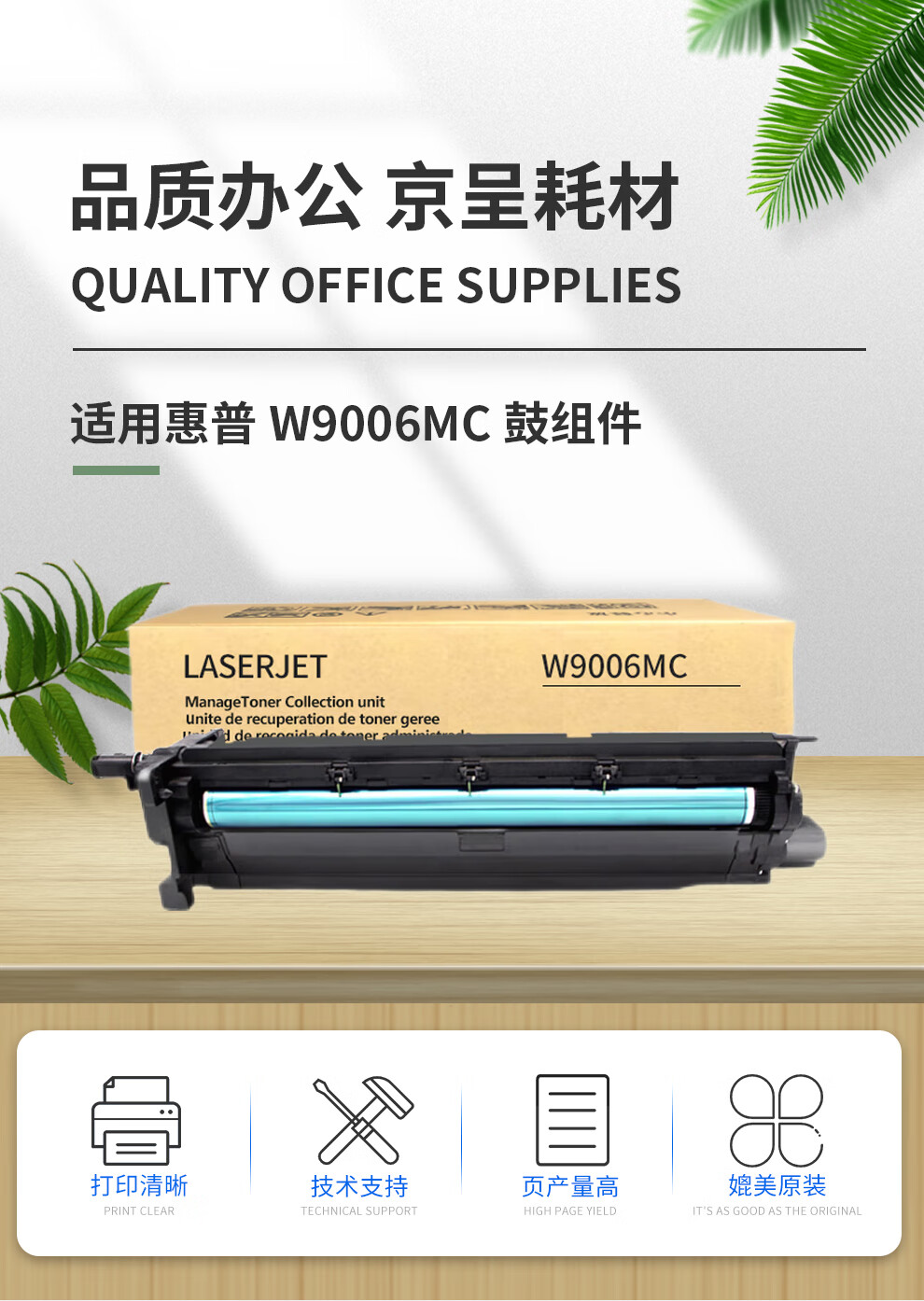 商品名称: 京呈W1002YC适用惠普HP LaserJet MFP M72625dn M72630dn硒鼓粉盒 W9006MC 原装再生成像鼓/鼓架/感光鼓80000页 W1002YC/支