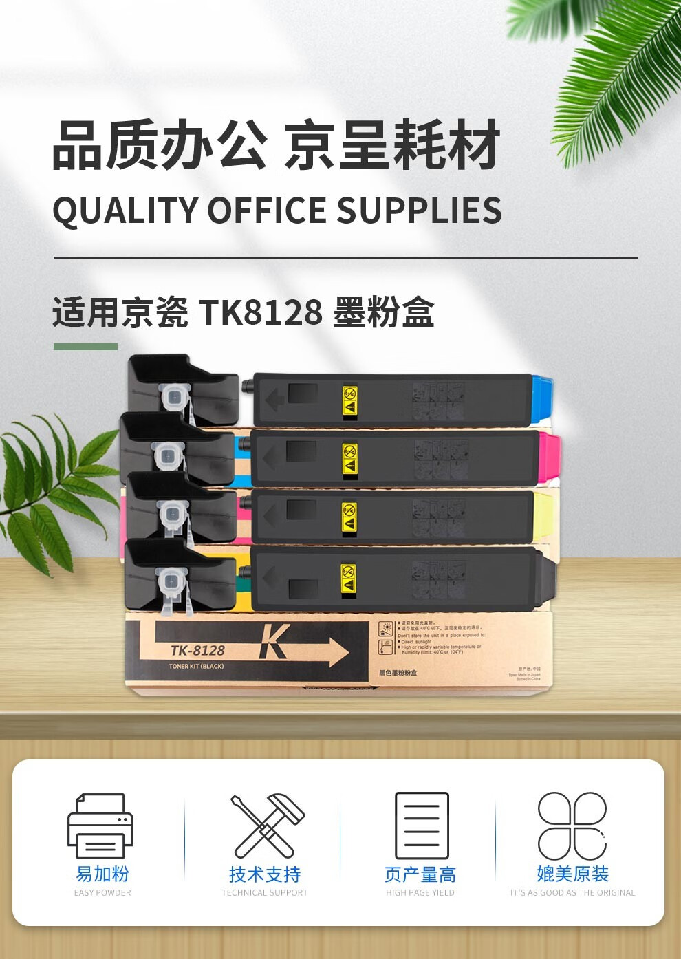 电脑、办公  > 办公耗材  > 硒鼓  >  京呈  >  京呈适用京瓷TK-8128粉盒ECOSYS M8130cidn墨粉盒京瓷M8130CIDN打印机碳粉 TK-8128大容量四色粉盒套装 40000页 TK-8128/套