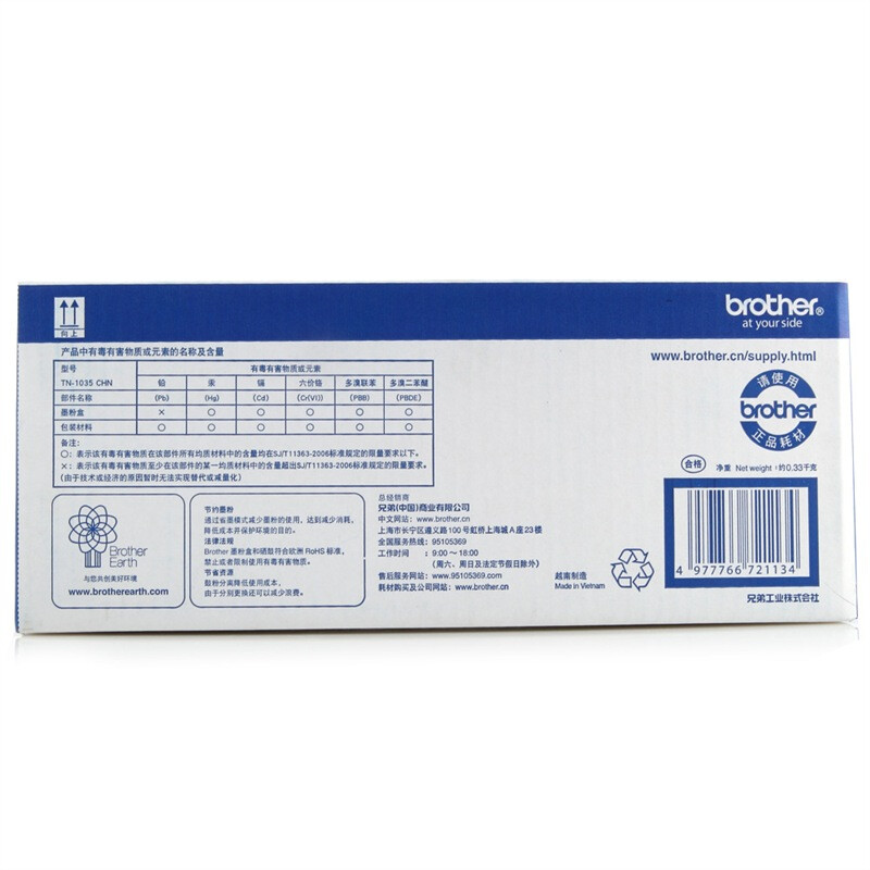 • 商品名称:兄弟(brother) TN-1035 黑色墨粉盒(兄弟HL-1218W、DCP-1618W、MFC-1819、MFC-1816、MFC-1919NW、HL-1118) TN-1035/个