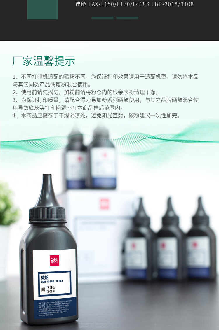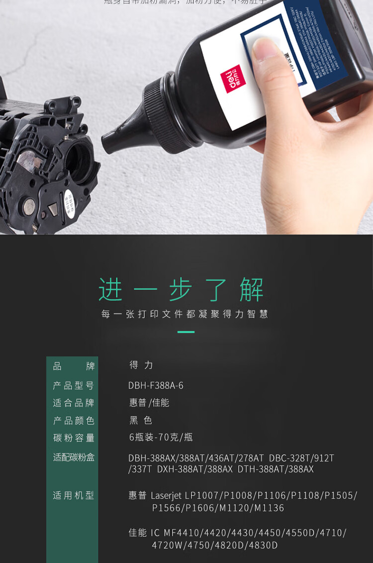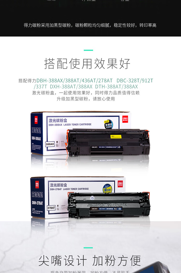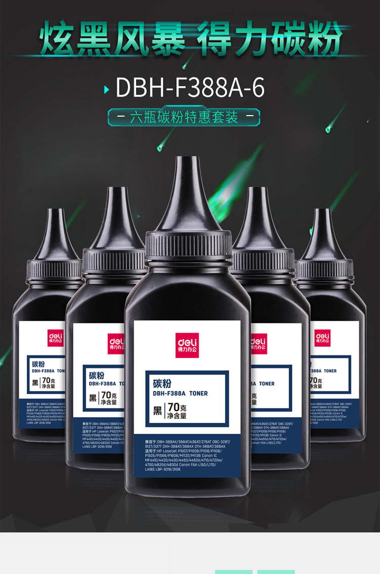 得力(deli)88a硒鼓碳粉/墨粉 388a适用惠普HP P1008 P1106 P1108 M1136 M126a M126nw M128fn打印机碳粉 6瓶DBH-F388A-6 DBH-F388A6/个