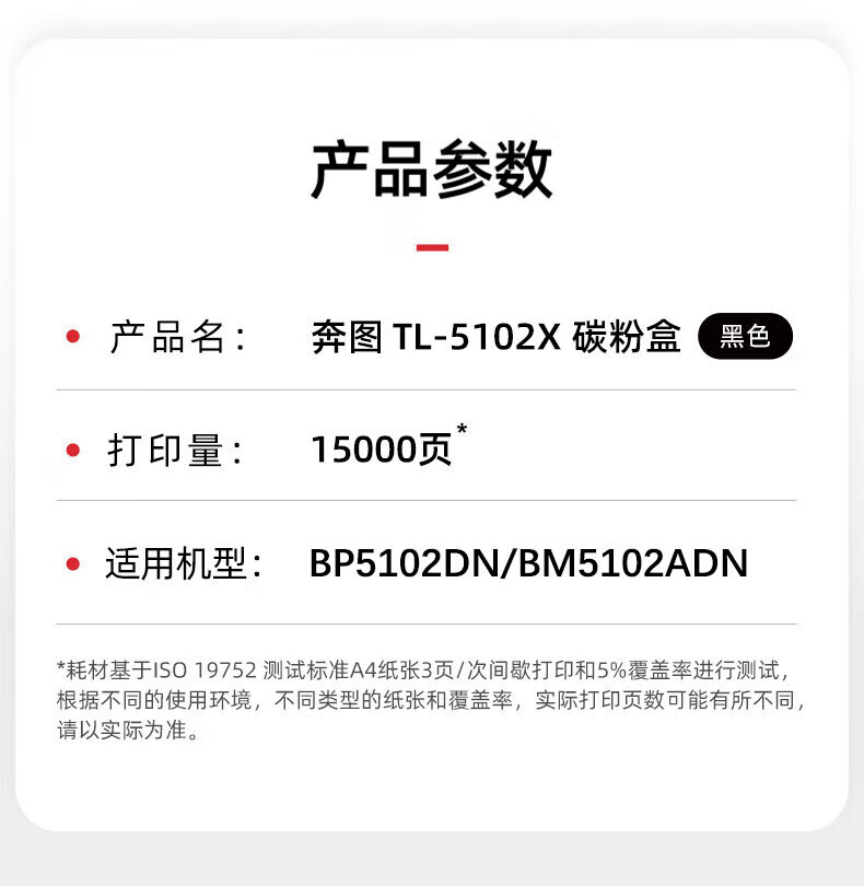 • 商品名称:奔图(PANTUM)TL-5102X 高容量碳粉 激光碳粉盒 适用于BP5102DN/BM5102ADN TL-5102X/个