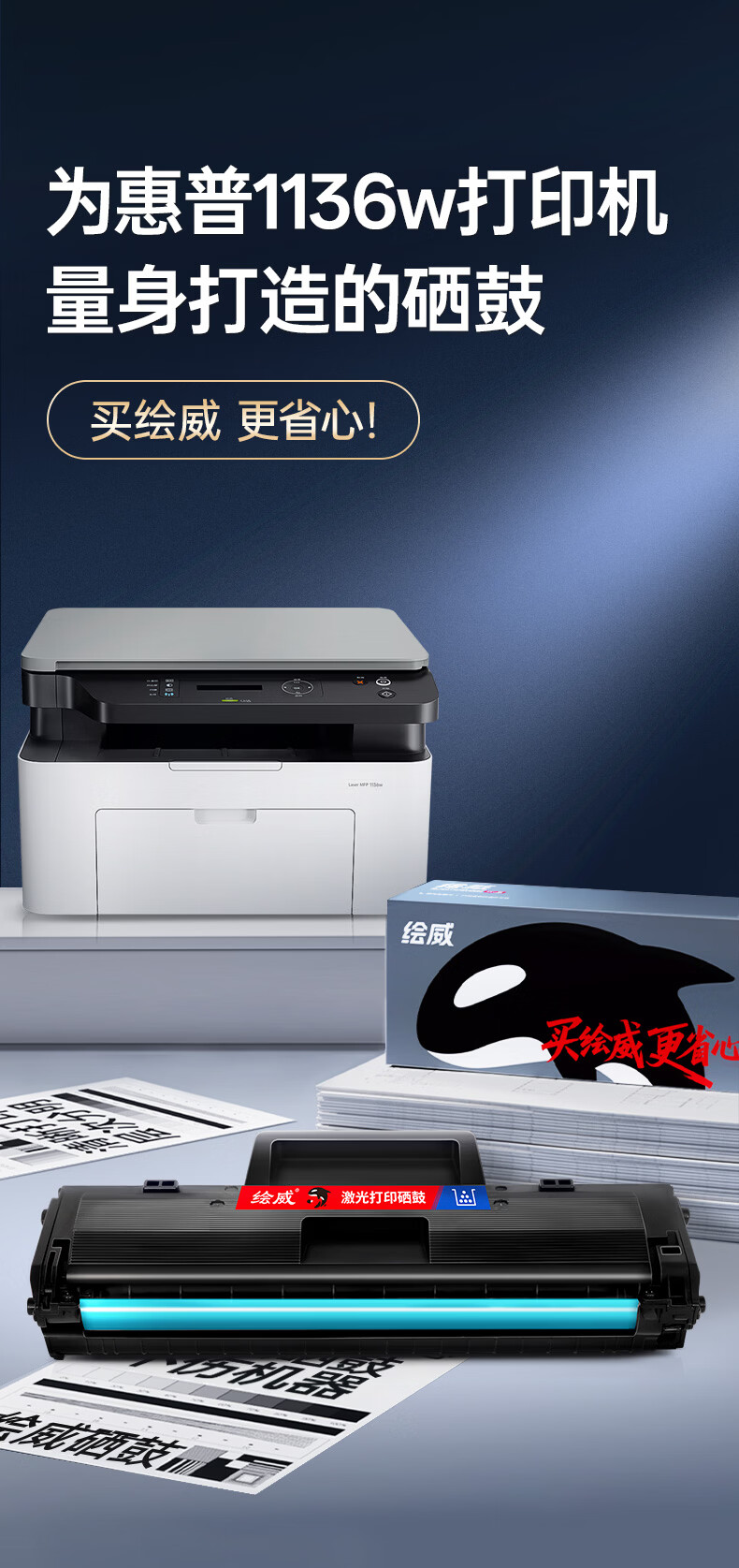 绘威1136w硒鼓适用惠普1136w硒鼓HP Laser MFP 1136w跃系列打印机专用硒鼓1136w墨盒1136w墨粉盒 粉盒 硒鼓/盒