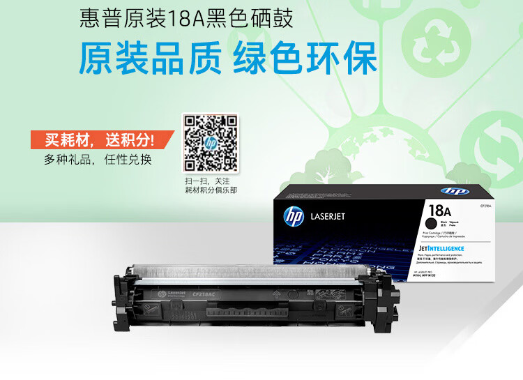电脑、办公  > 办公耗材  > 硒鼓  >  惠普/HP  >  惠普(HP)CF218A原装硒鼓 黑色(支)(适用:M104a/M104w/M132a/M132nw/M132fn/M132fp/M132fw)辨假服务 CF218A/支