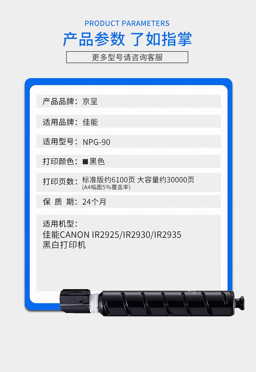 商品名称: 京呈NPG-90粉盒适用佳能Canon iR2925 iR2930 iR2935黑白硒鼓90L碳粉 成像鼓/感光鼓组件约95000页 NPG-90/支
