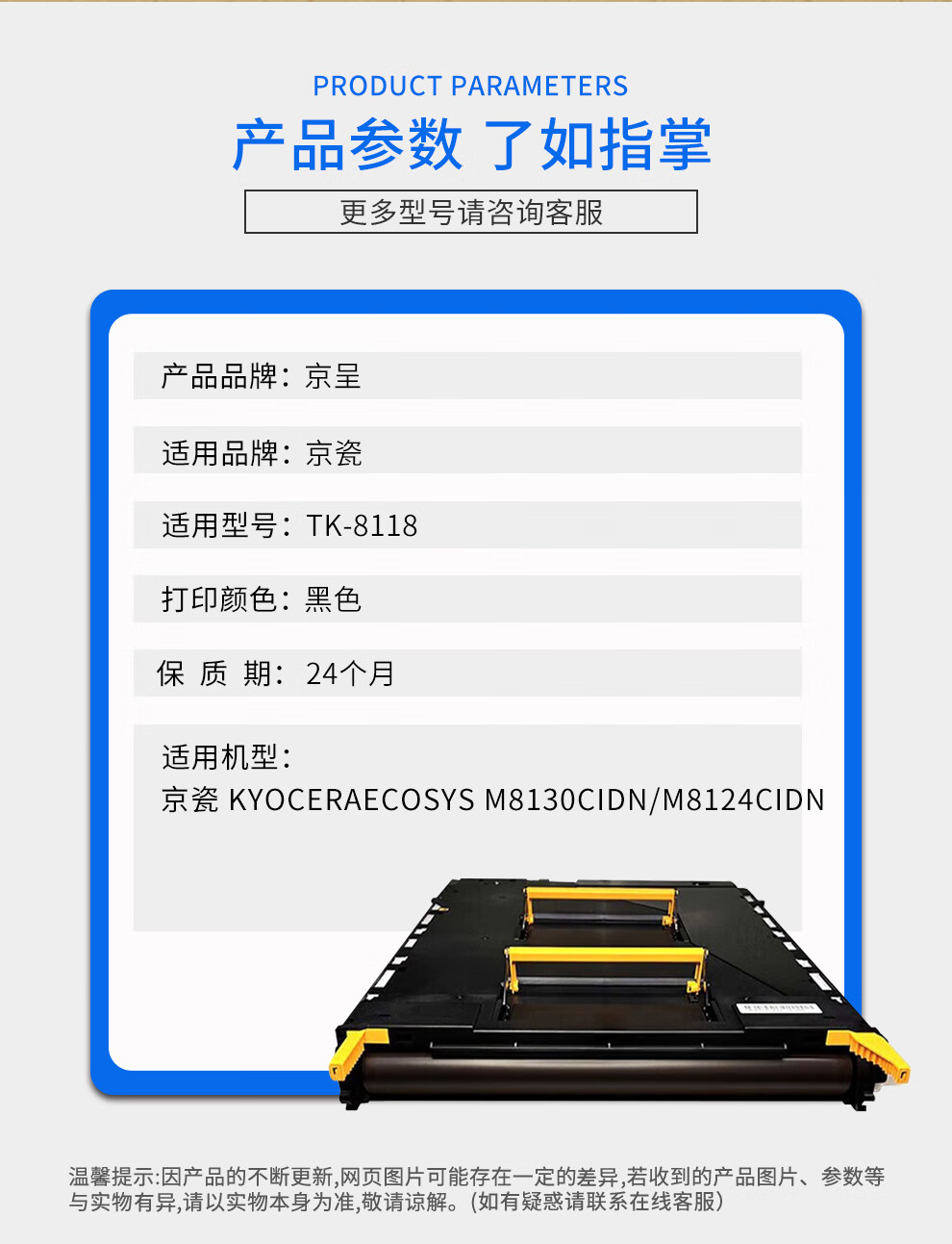 电脑、办公  > 办公耗材  > 硒鼓  >  京呈  >  京呈适用京瓷TK-8118粉盒Ecosys M8124cidn墨粉盒京瓷M8124cidn打印机碳粉 全新原装转印带 TK8118/支
