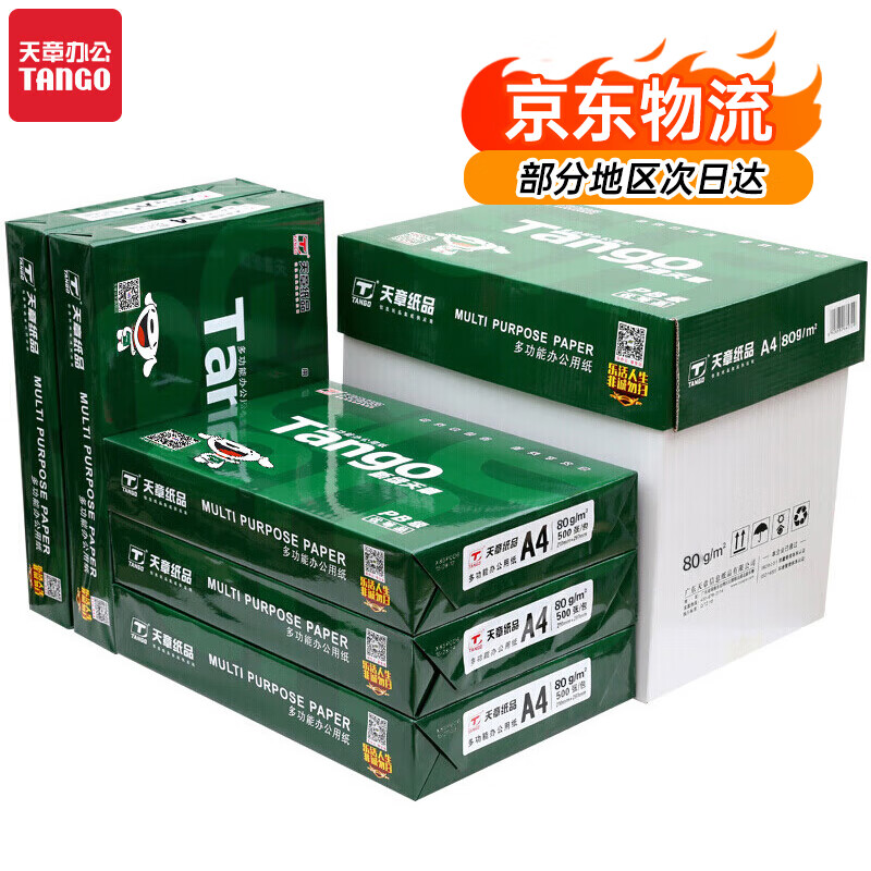 商品名称: 新绿天章 A4纸 80g复印纸 双面打印纸 多功能环保复印纸(品质打印) 500张/包 5包/箱(2500张) 新绿天章 复印纸A4 80g 5包装/箱