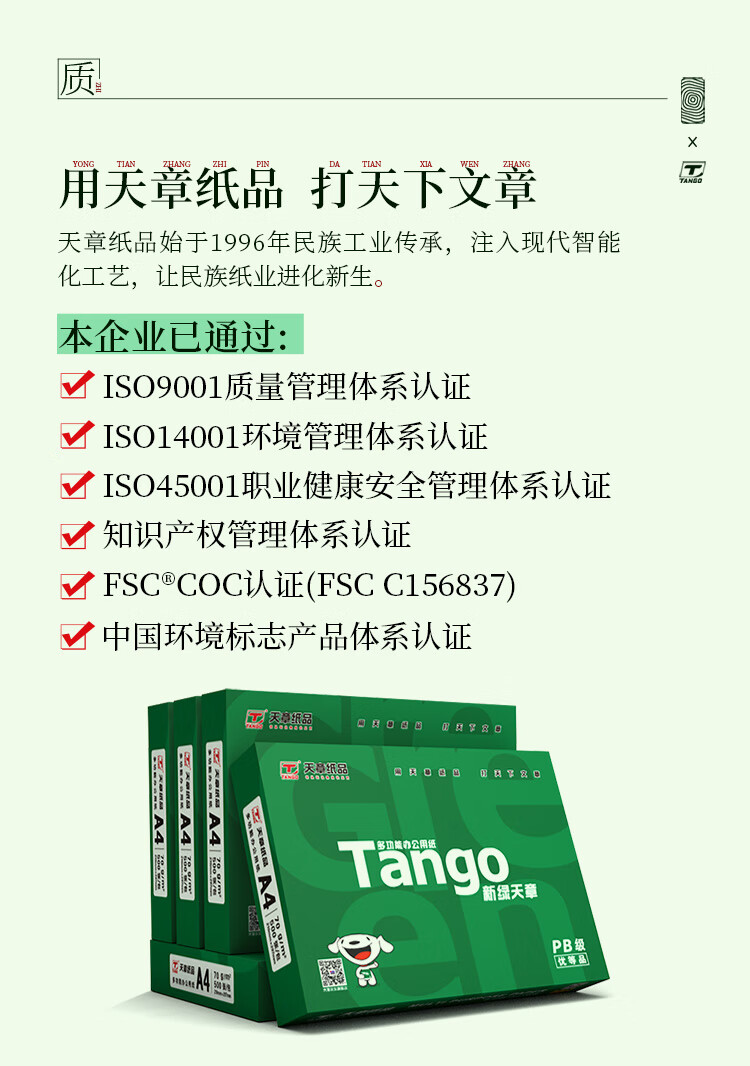 • 商品名称:新绿天章 A4纸 80g复印纸 双面打印纸 多功能环保复印纸(品质打印) 500张/包 5包/箱(2500张) 新绿天章 复印纸A4 80g 5包装/箱