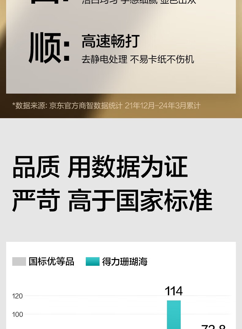 电脑、办公  > 办公耗材  > 纸类  >  得力/deli  >  得力(deli)珊瑚海A4打印纸 70g500张*5包一箱 双面打印复印纸 整箱2500张7361 复印纸/箱