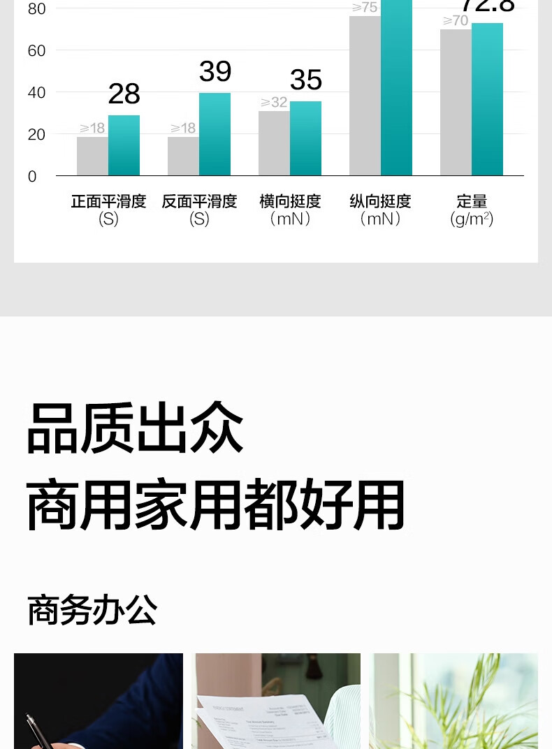包装清单: 70gA4复印纸×1箱(5包)