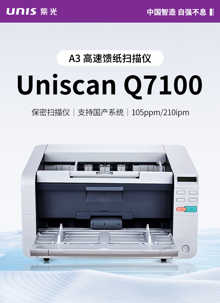电脑、办公  > 办公设备  > 扫描仪  >  紫光/UNIS  >  紫光(UNIS)Uniscan Q7100 馈纸扫描仪 A3高速彩色自动双面U型扫描仪 支持国产系统 国保测认证 Uniscan Q7100/台