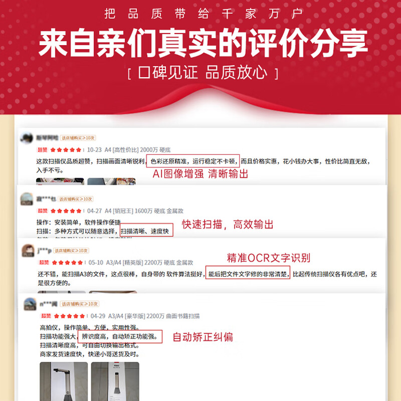 商品名称: 得力 1600万像素高拍仪 自动连续扫描OCR文字识别AI增强算法纠偏 办公家用 金属机身 A4硬底15160 15160/台