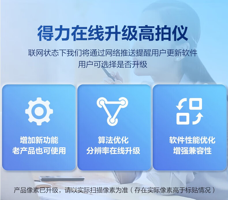 电脑、办公  > 办公设备  > 扫描仪  >  得力/deli  >  得力 1600万像素高拍仪 自动连续扫描OCR文字识别AI增强算法纠偏 办公家用 金属机身 A4硬底15160 15160/台