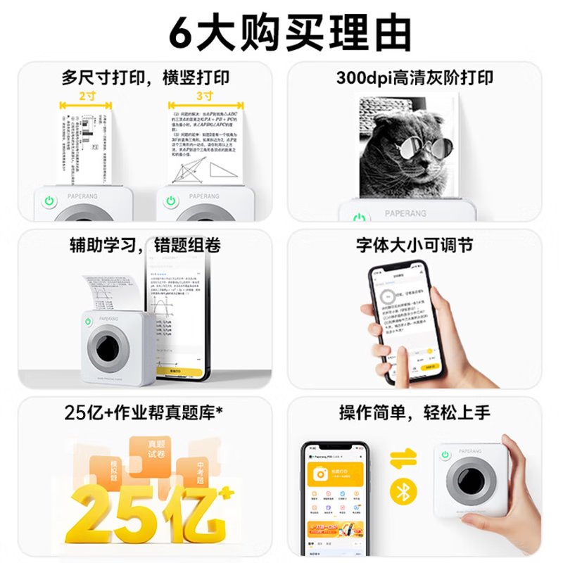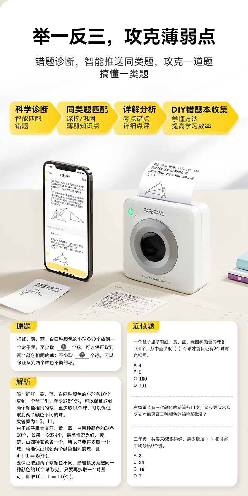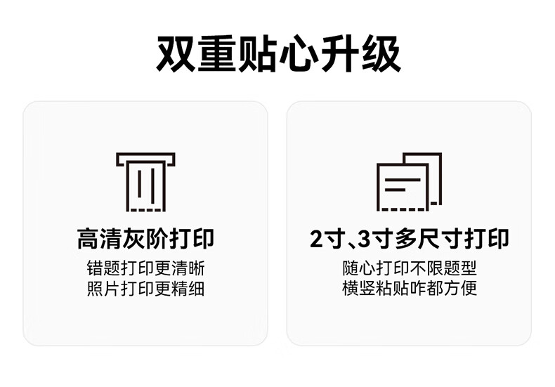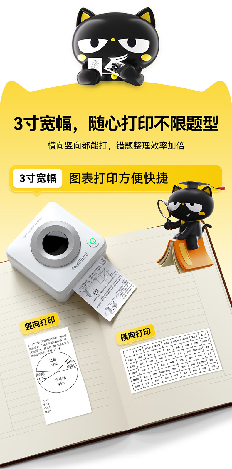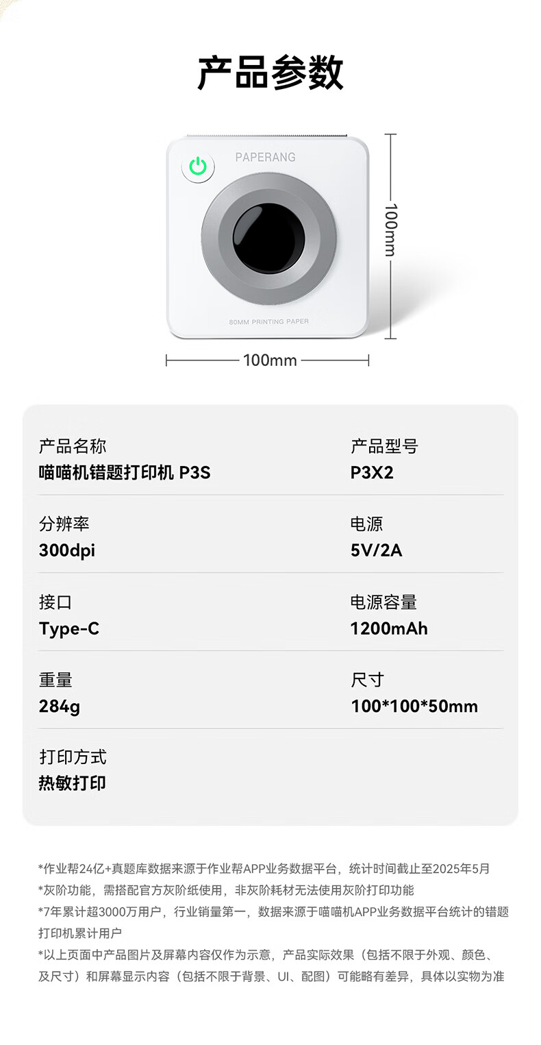 • 商品名称:喵喵机错题打印机P3S 3寸超高清灰阶宽幅作业帮家用错题整理免抄学生迷你便携照片热敏打印机可粘贴2英寸 P3/台