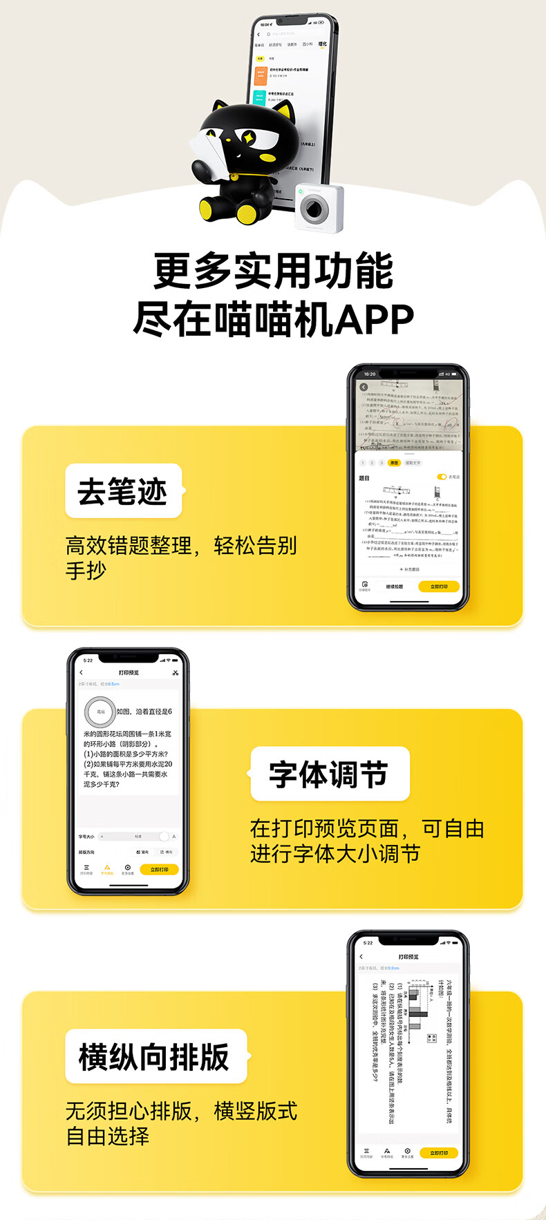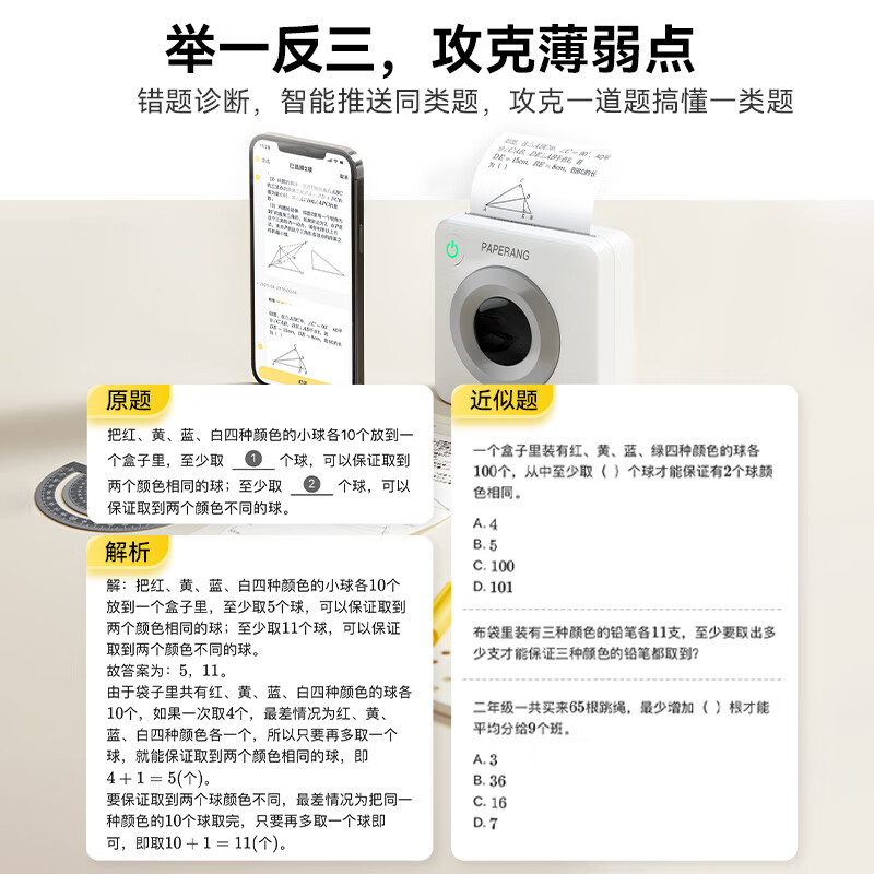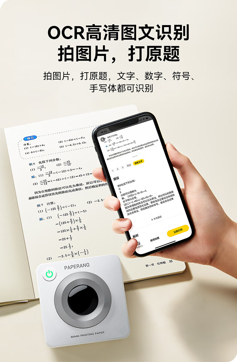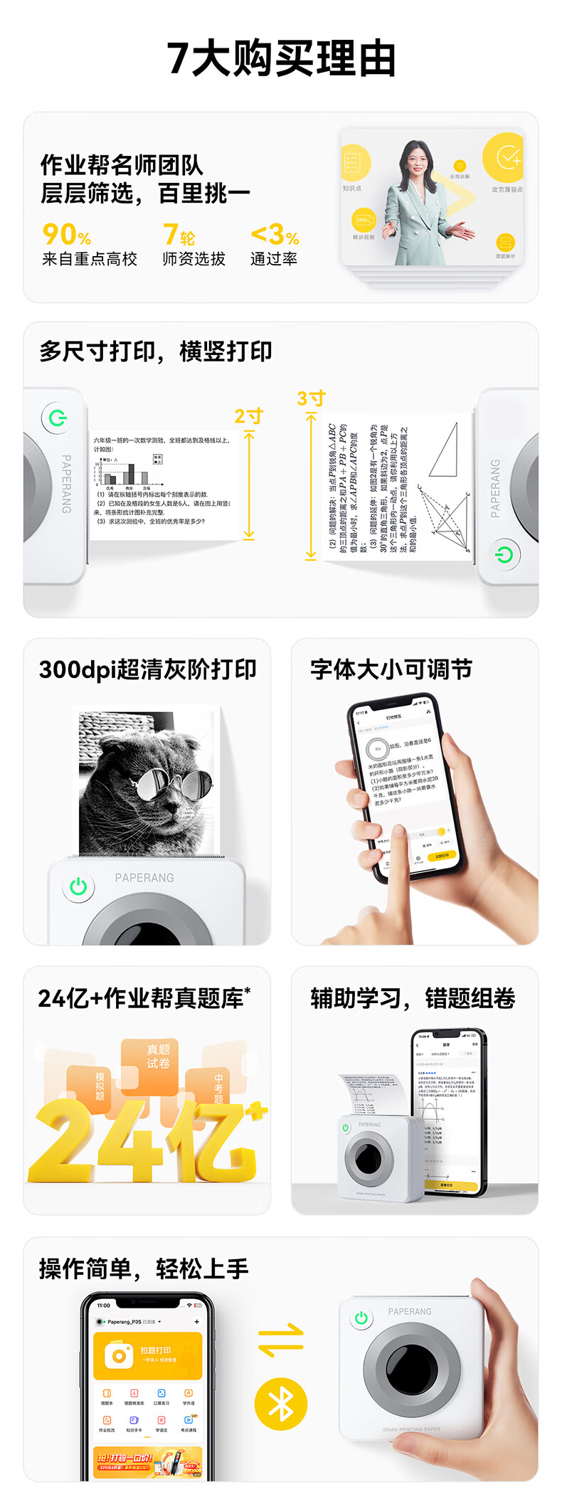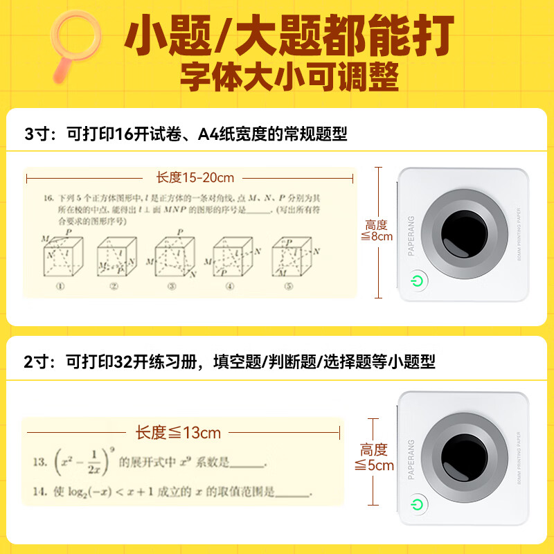 • 商品名称:喵喵机错题打印机P3S 3寸超高清灰阶宽幅作业帮家用错题整理免抄学生迷你便携照片热敏打印机可粘贴2英寸 P3/台