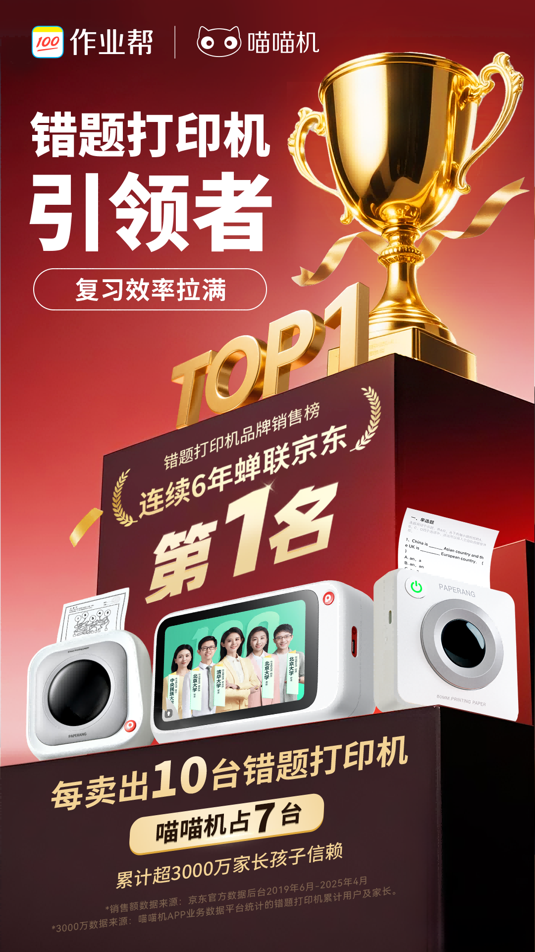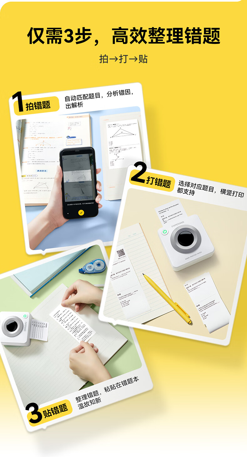 电脑、办公  > 办公设备  > 其他打印设备  >  喵喵机  >  喵喵机错题打印机P3S 3寸超高清灰阶宽幅作业帮家用错题整理免抄学生迷你便携照片热敏打印机可粘贴2英寸 P3/台