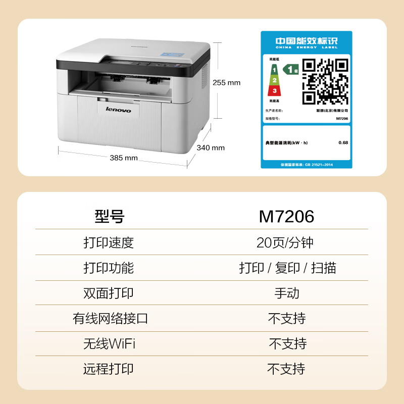 • 商品名称:联想(Lenovo)至像M7206 黑白激光打印机办公家用学习 打印复印扫描多功能一体机 学生作业打印机 M7206/台