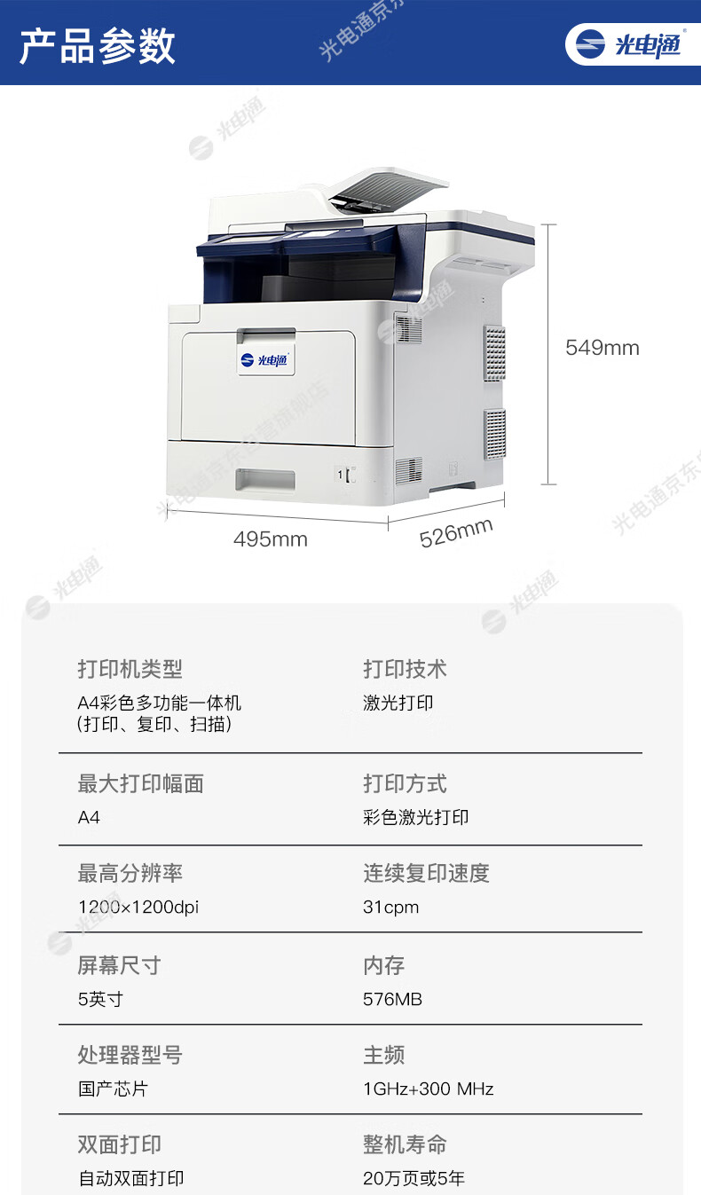 • 商品名称:光电通 MF3130CDN 专用彩色激光多功能一体机(打印 复印 扫描 传真四合一)A4自动双面打印 MF3130CDN/台