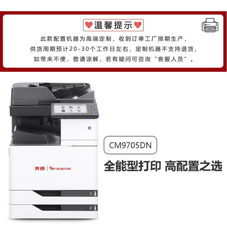 • 商品名称:奔图(PANTUM) CM9705DN A3彩色多功能数码复合机(含三四层纸盒)打印复印扫描一体信创打印机+服务支持 CM9705DN/台