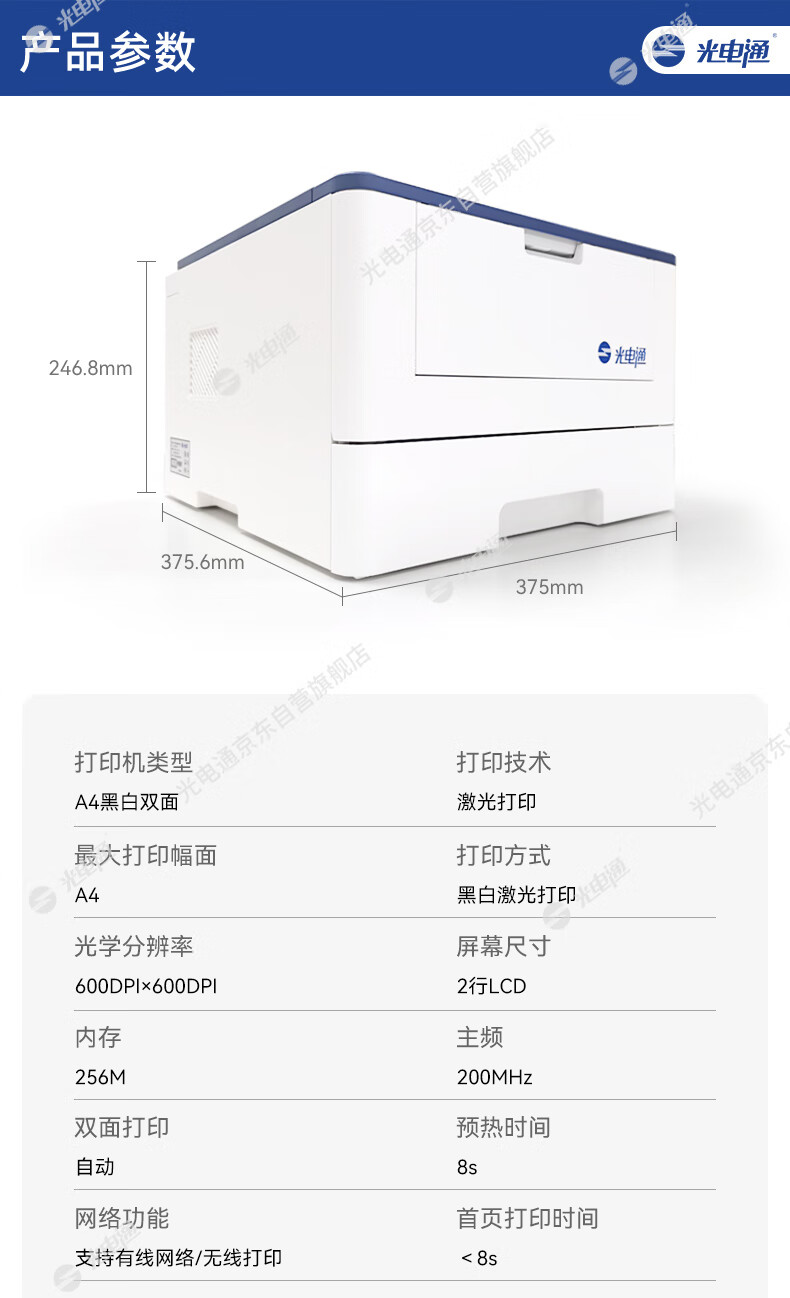 • 商品名称:光电通 OEP3050DNW 专用A4黑白双面激光打印机 OEP3050DNW/台