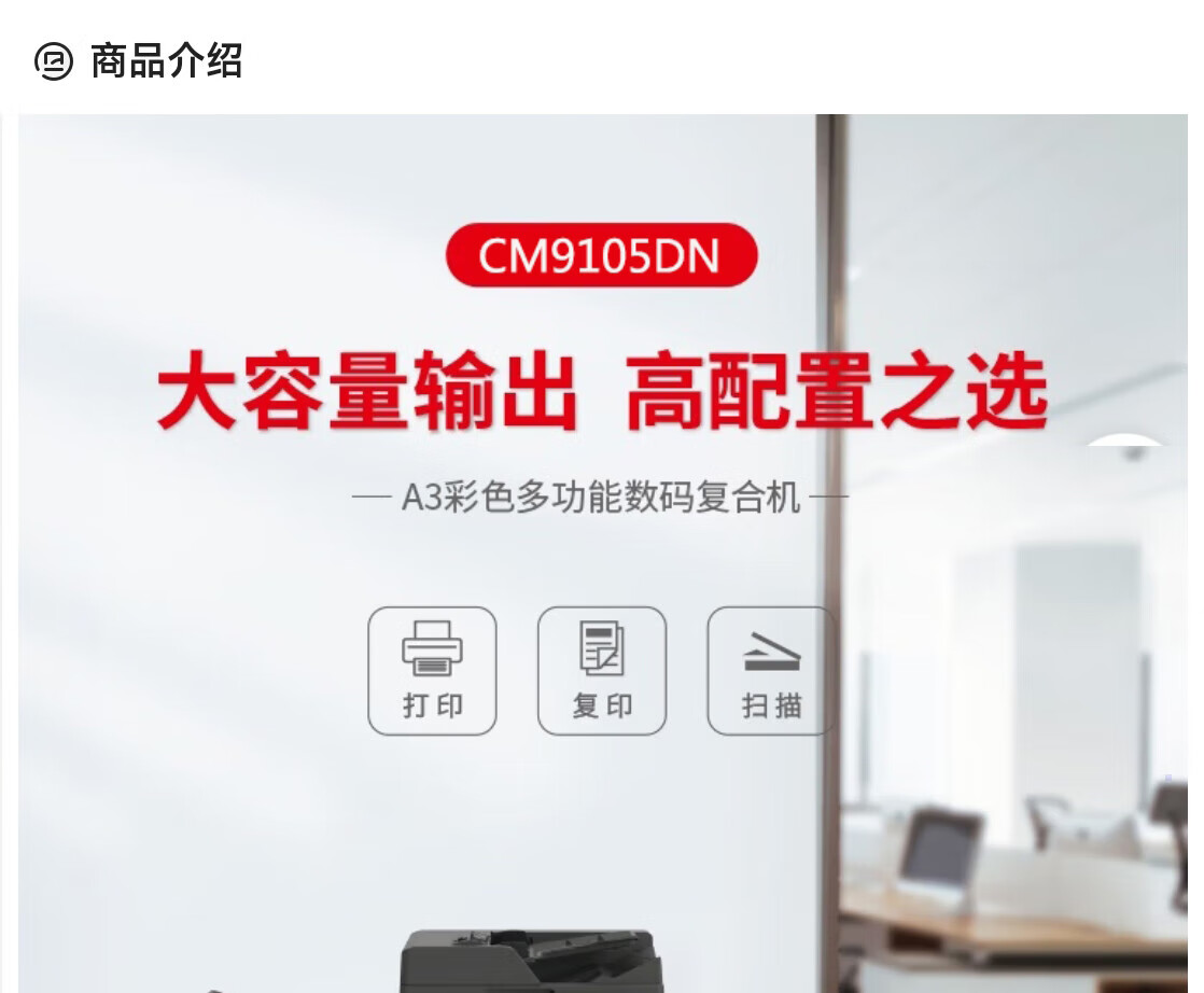 商品名称: 奔图(PANTUM)CM9105DN A3彩色多功能数码工程打印机45ppm/自动双面(打印/复印/扫描)国产化 CM9105DN/台