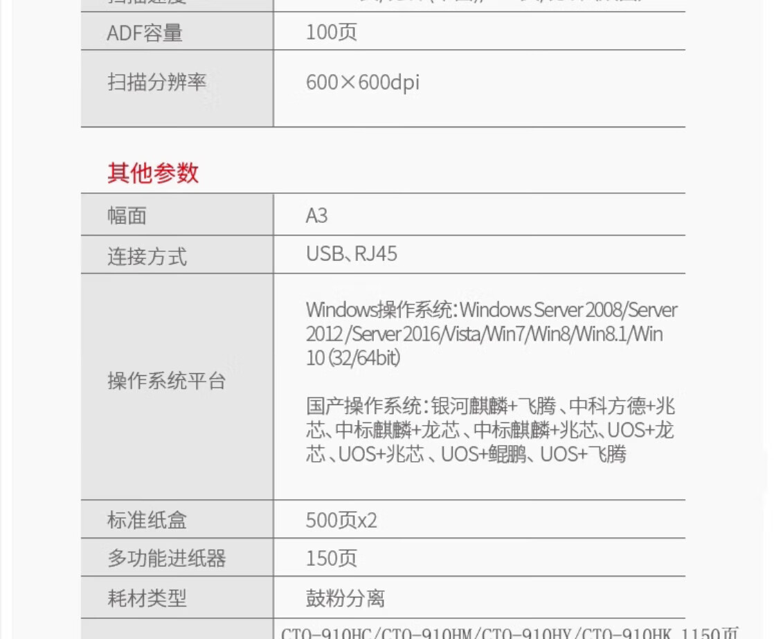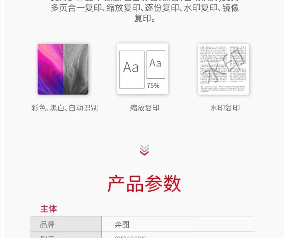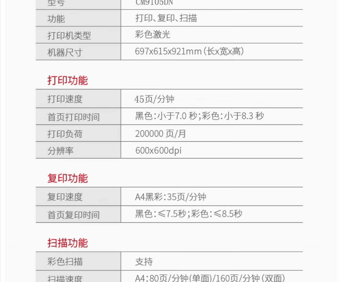 • 商品名称:奔图(PANTUM)CM9105DN A3彩色多功能数码工程打印机45ppm/自动双面(打印/复印/扫描)国产化 CM9105DN/台