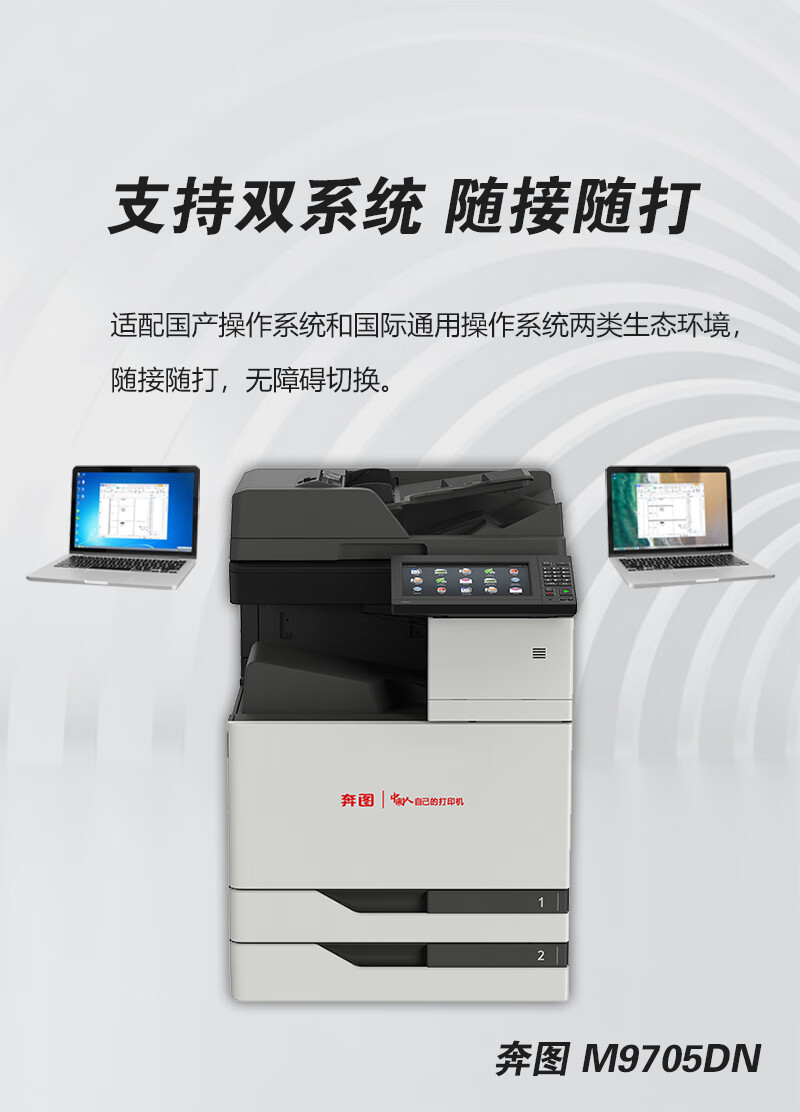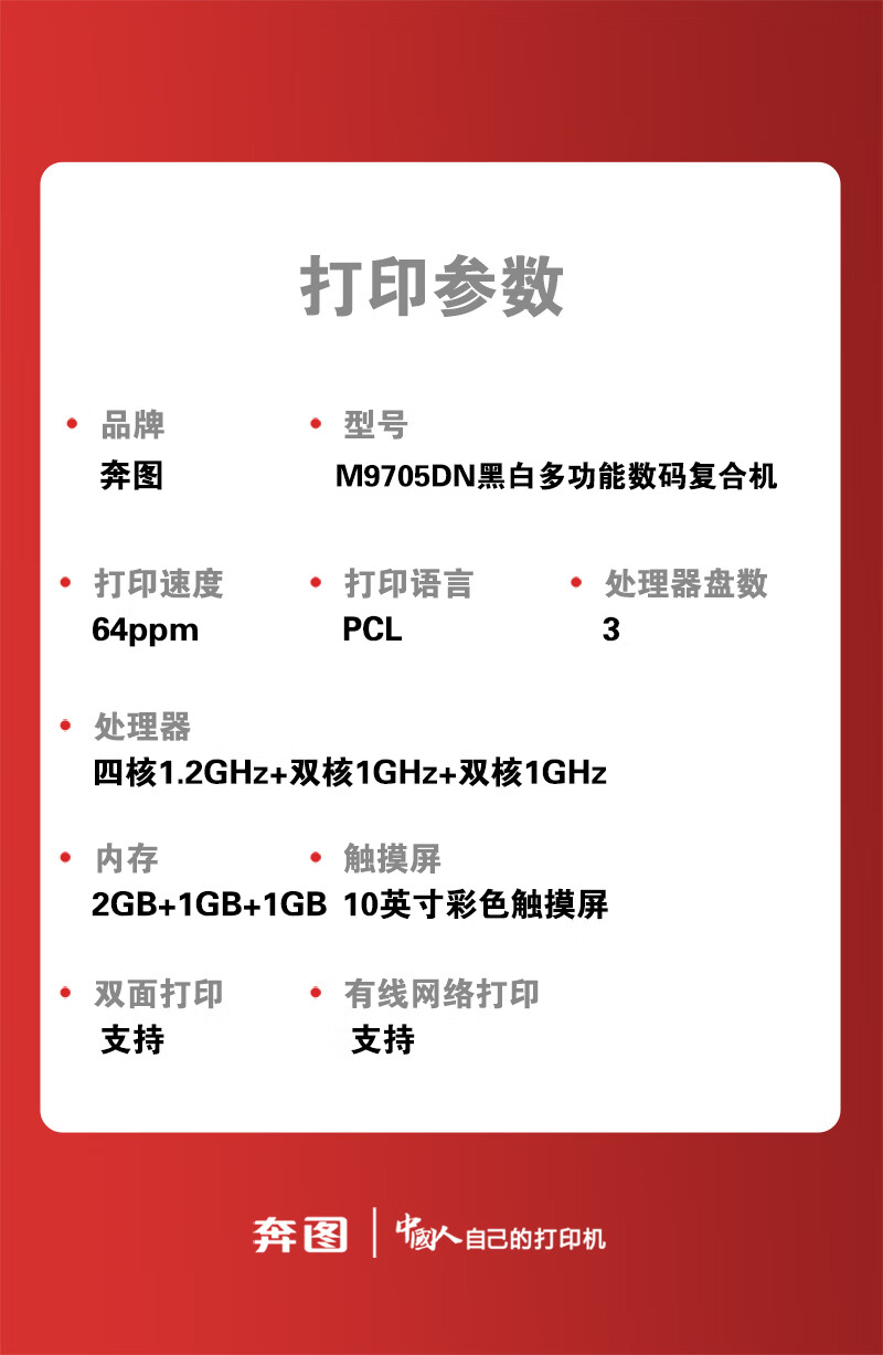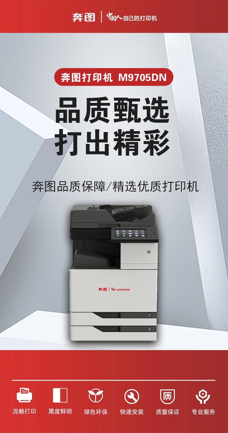 • 商品名称:奔图打印机 A3激光黑白打印机/扫描仪/复印机 10英寸彩色触摸屏自动双面打印 M9705DN M9705DN/台