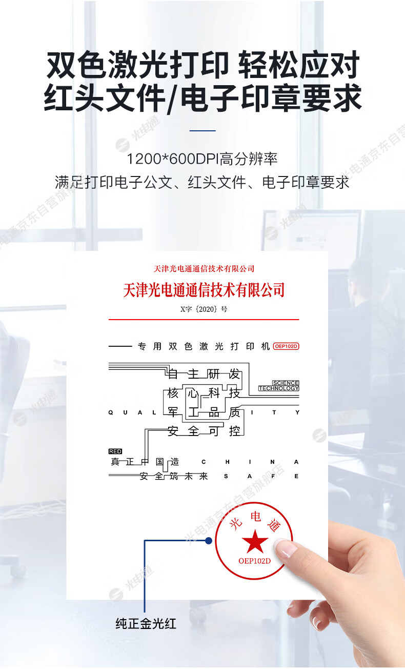 • 商品名称:光电通 OEP102D 全国产化信创设备 专用A4双色激光打印机 (A4红黑机 红头文件电子签章专用) OEP102D/台