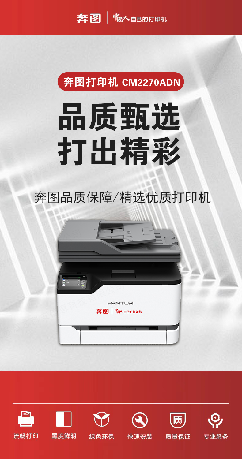 电脑、办公  > 办公设备  > 打印机  >  奔图/PENTUM  >  奔图彩色激光多功能一体机 支持自动双面打印 触摸屏 复印 打印 扫描三合一 CM2270ADN CM2270ADN/台