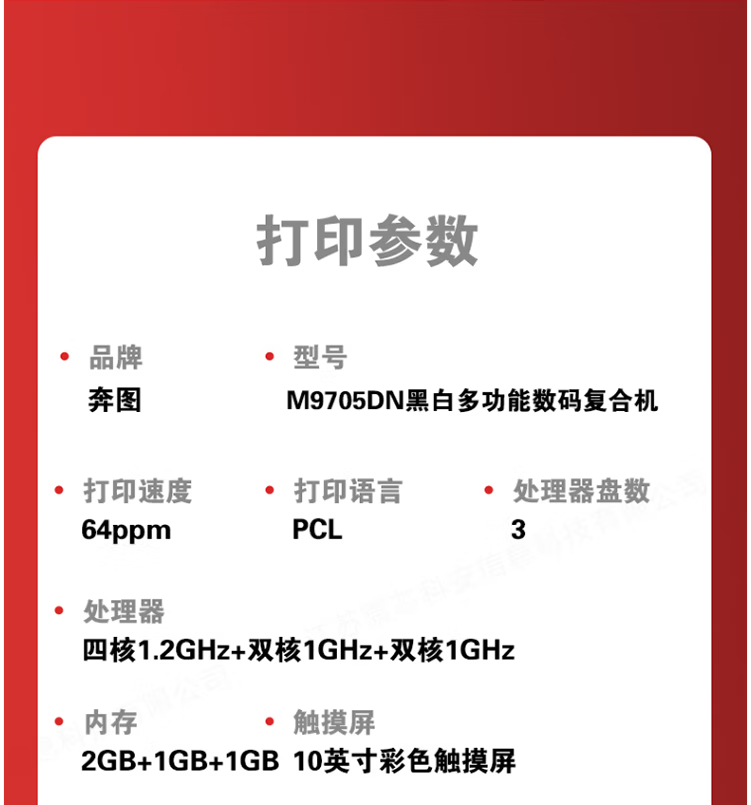 • 商品名称:奔图(PANTUM)信创打印机 M9705DN 国产化A3黑白多功能数码复合机打印机64ppm/自动双面整机 M9705DN/个