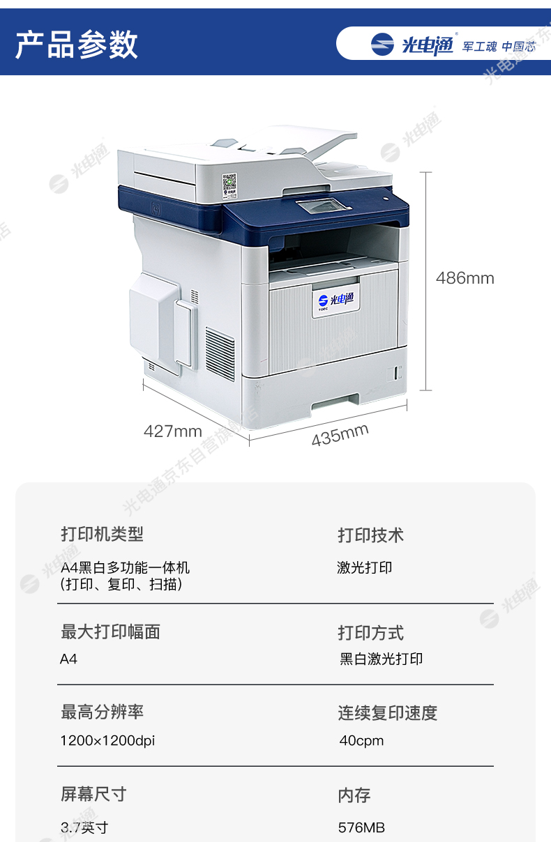 • 商品名称:光电通MP4024DN 全国产化信创设备 黑白激光多功能一体机 MP4024DN/台