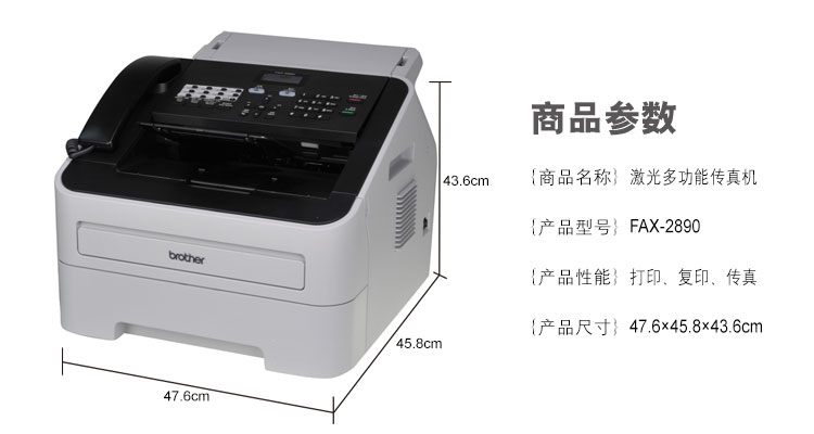 商品名称: 兄弟(BROTHER)FAX-2890 激光多功能传真机 (打印 复印 传真) FAX-2890/台
