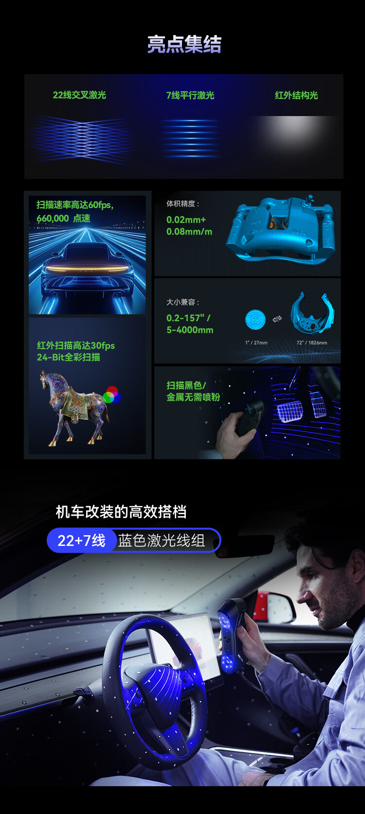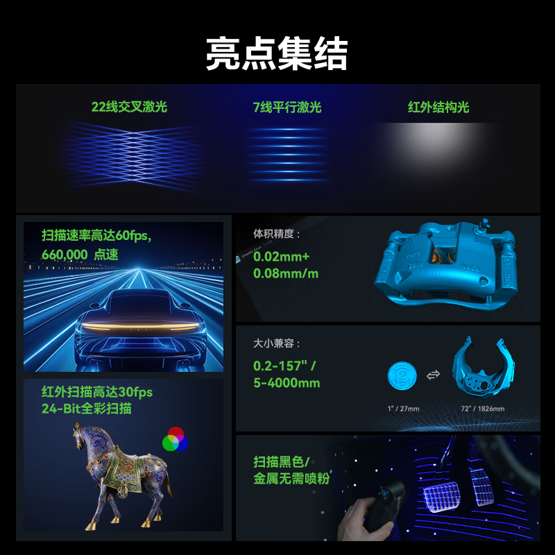 商品名称: 创想三维3D扫描仪便携式高精度设备CR-Scan Raptor Pro手持式逆向建模检测仪器 CR-Scan Raptor Pro/个