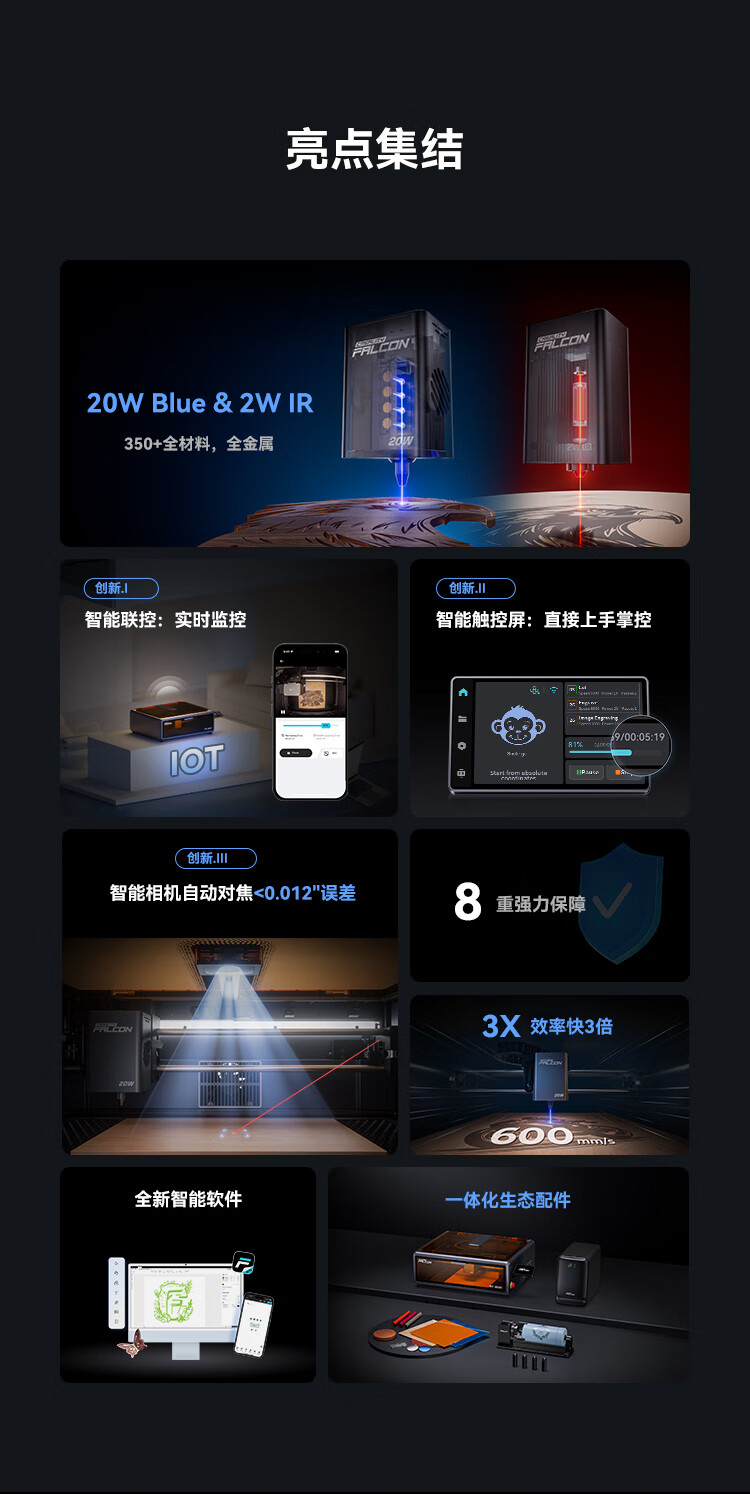 创想三维 A1 Pro 激光雕刻机家用办公设备便携式商用打标3d打印机 Falcon A1 Pro/个