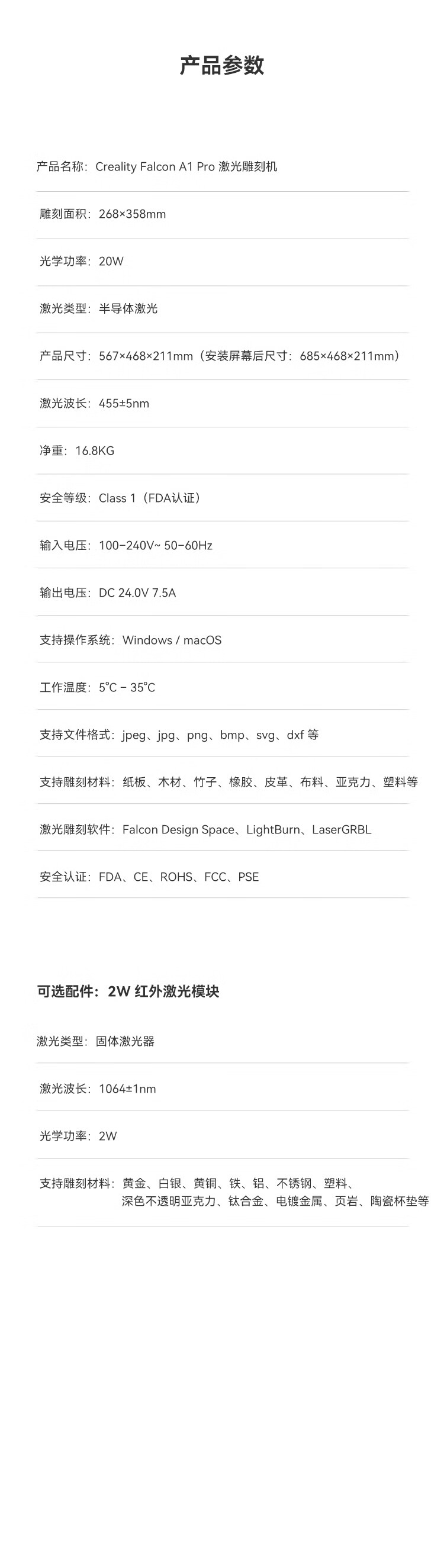 • 商品名称:创想三维 A1 Pro 激光雕刻机家用办公设备便携式商用打标3d打印机 Falcon A1 Pro/个